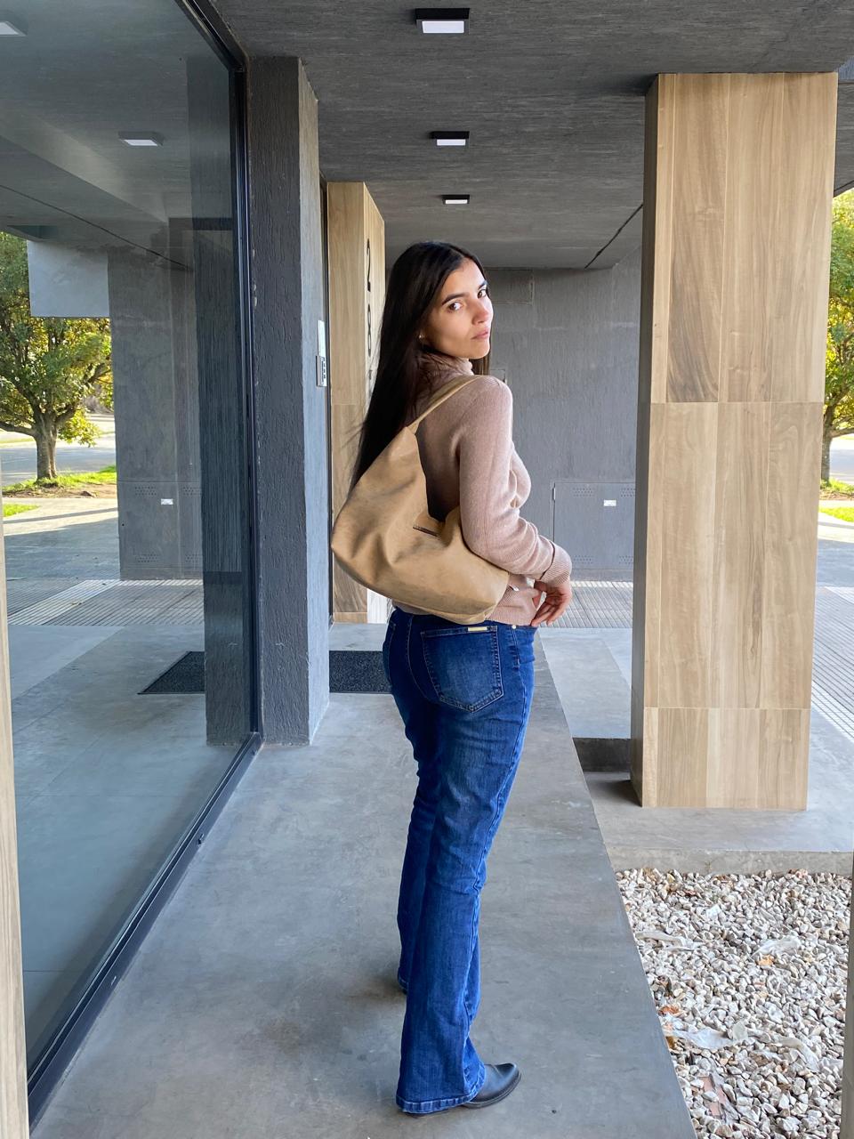 Que de mini no tiene nada. Re canchera y súper espaciosa, esta minibag en color beige es el complemento ideal para quienes buscan estilo sin sacrificar espacio. Su diseño moderno y sofisticado la convierte en una pieza clave para cualquier look, perfecta para llevar todo lo esencial y mucho más, sin perder la onda.