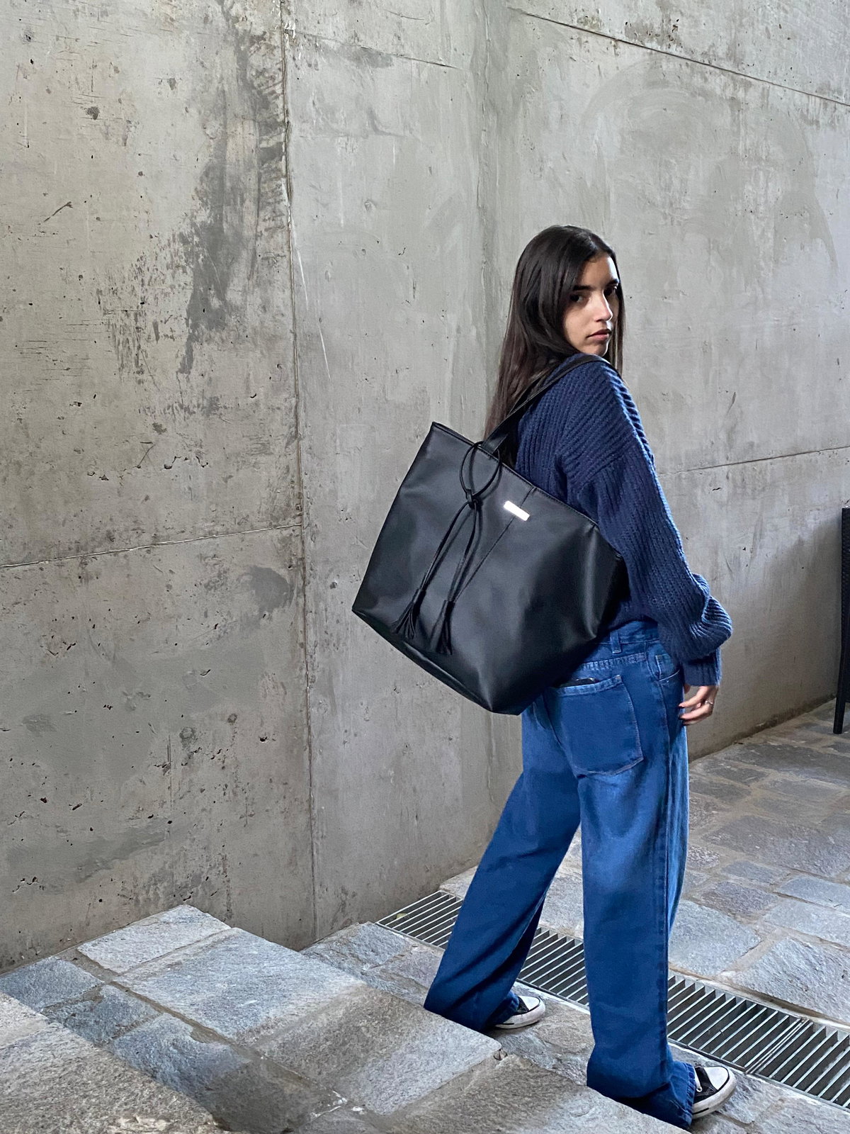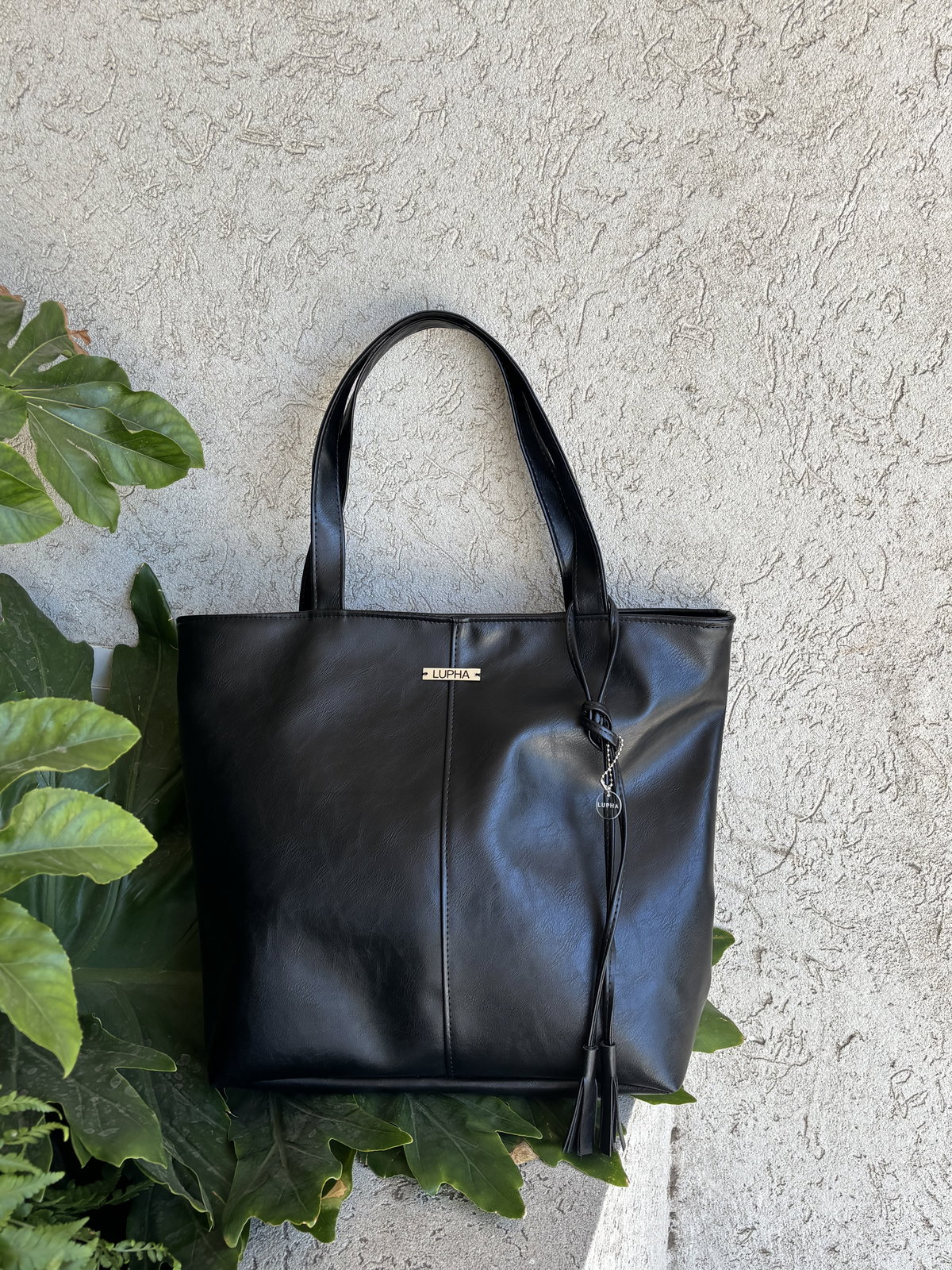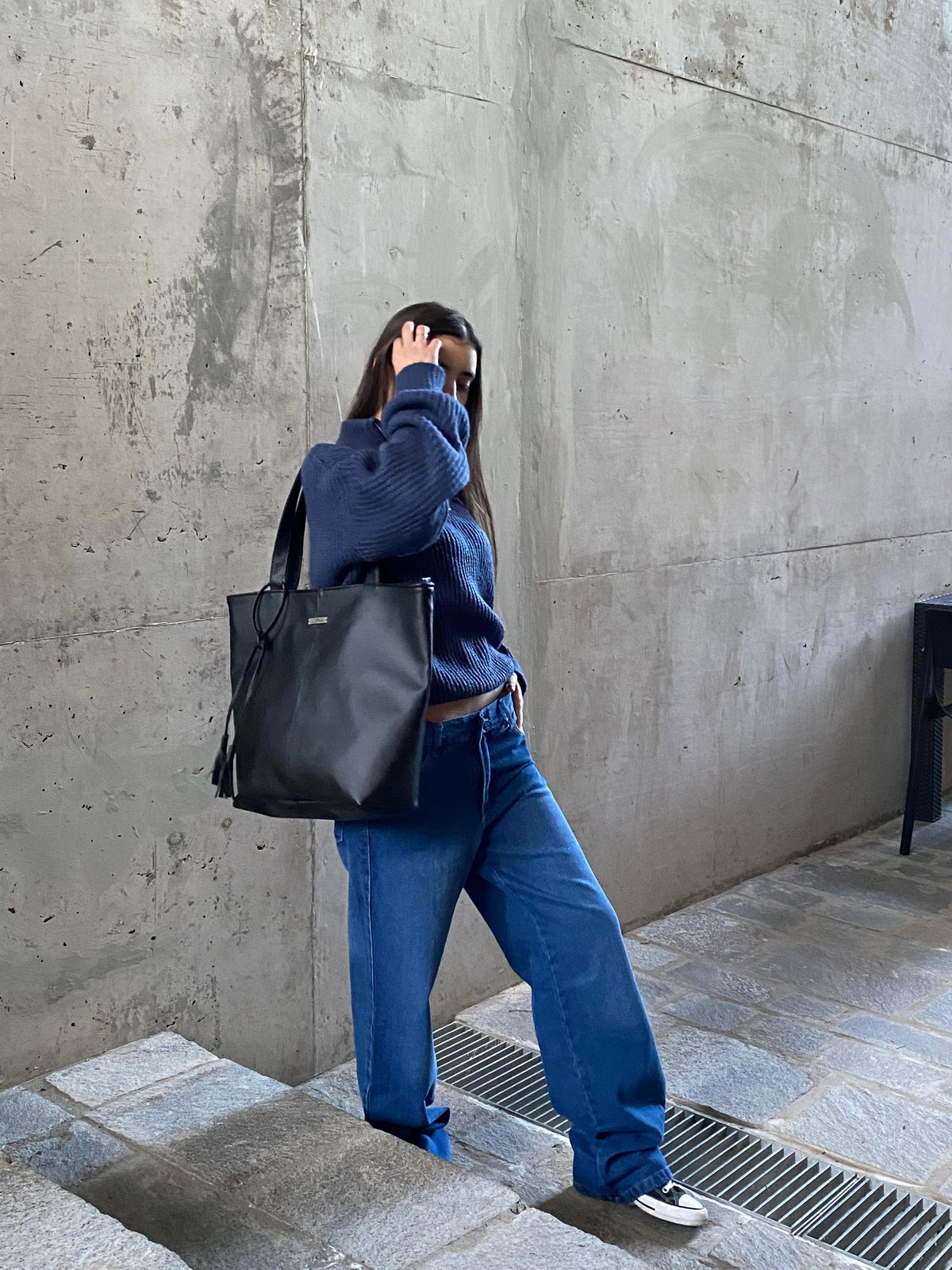 Amplia, cómoda y con un estilo que no falla, la Tote Bag Begonia en negro es tu compañera ideal para todos los días. Con borlas que le dan ese toque único, cierre superior y bolsillo interno para que todo quede en su lugar. Mide 47 cm de ancho por 37 cm de alto, con una base firme de 35 x 13 cm que asegura capacidad y estructura. Su diseño clásico con un twist moderno la hace perfecta para la rutina, el laburo o una salida tranqui.