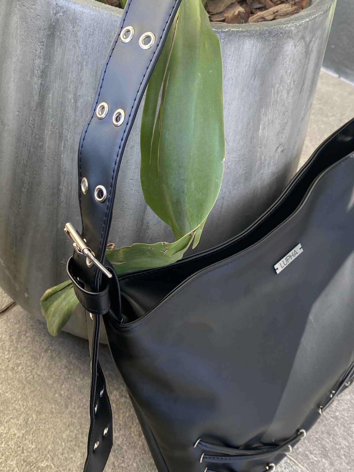 Incluye bolsillo interno, cierre superior y correa con ojales regulable. Urbana, práctica y con estilo propio.