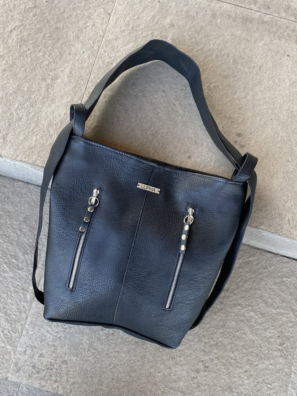 Está confeccionada en cuero, lo que le da un look súper canchero y una estructura firme y duradera. Tiene doble bolsillo externo para tener a mano lo importante, cierre superior para más seguridad, y bolsillo interno para organizarte mejor.
