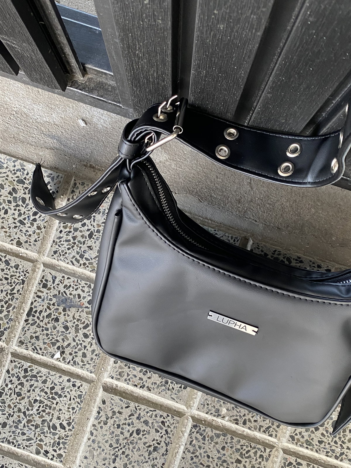 Zafira es versátil y canchera: usala como minibag al hombro o bandolera, según cómo ajustes su correa regulable con ojales.