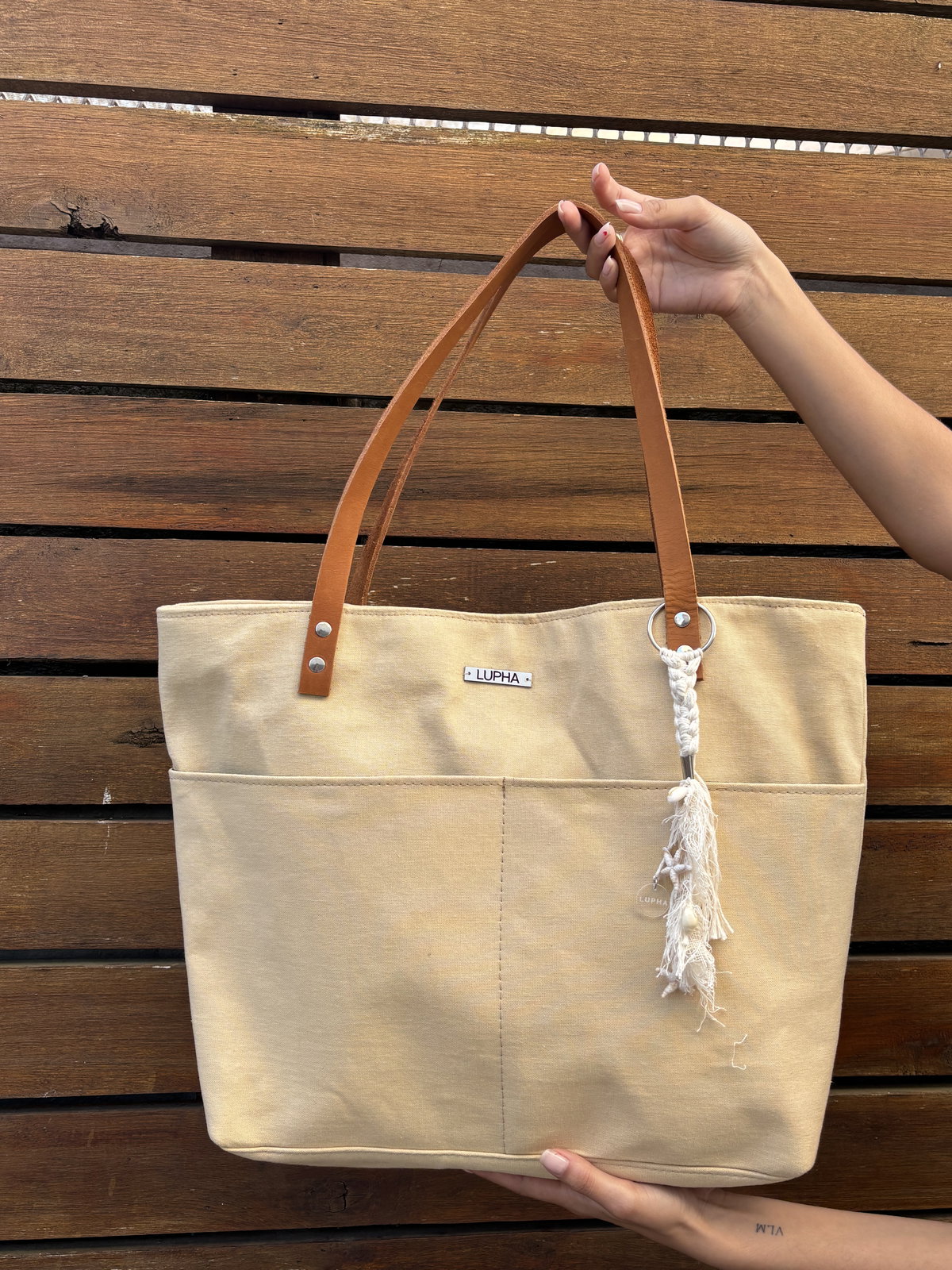 Amplio, liviano y funcional, el Bolso Cariló es un accesorio hermoso para la playa y para el uso diario. Confeccionado en lona resistente color natural, combina comodidad y un estilo fresco y relajado.