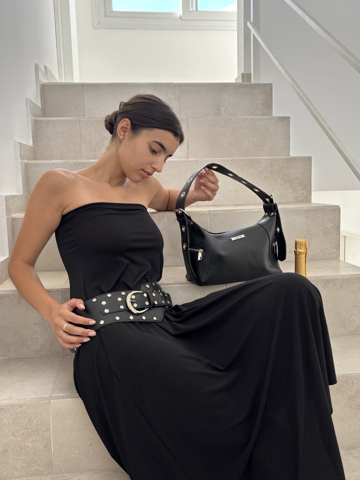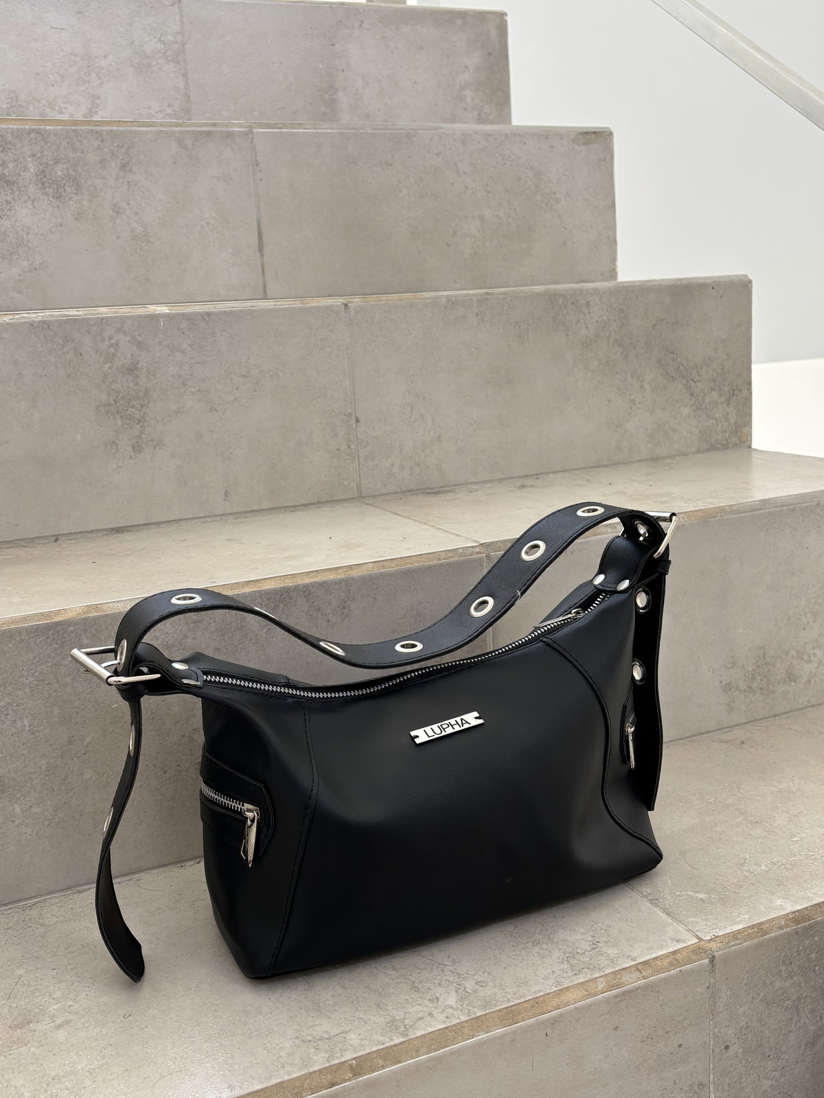 Minibag Emilia – Súper amplia, con dos bolsillos laterales con cierre, bolsillo principal con cierre y bolsillo interno. Medidas: 17 x 30 x 10 cm.